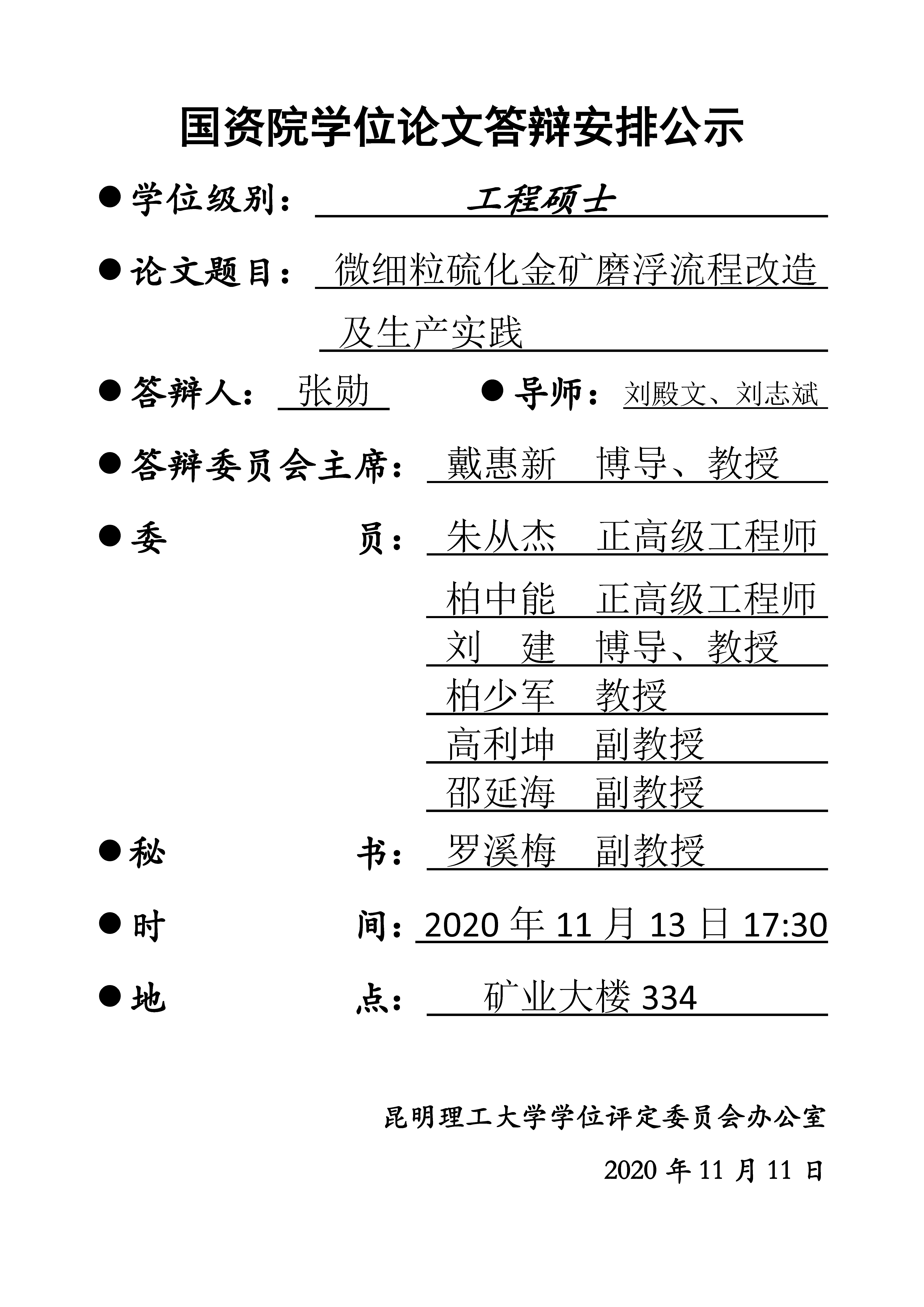 张勋学位论文答辩安排公示