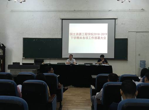 2018-2019年下学期期末工作部署会在学院第一会议室召开,学院党委副书记朱大明、副院长李克钢院长、各系主管教学副主任、班主任、教务办老师及全院辅导员参加了本次会议。