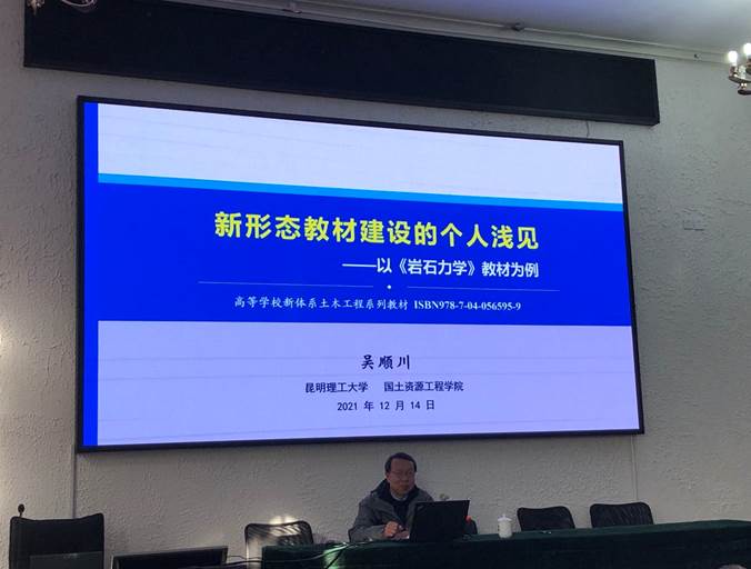 第一会议室作了“新形态教材建设的个人浅见——以《岩石力学》为例”的精彩学术报告。吴顺川教授向全院教师展示了新时代教材建设的蓝图,并以自己牵头建设出版的新形态教材《岩石力学》为例,介绍了该教材的编写历程、编审团队付出的艰辛努力以及目前已获得的高度评价和认可;同时,也分析了新版教材的本质与质量需求、编写高质量教材的要求与流程,并对BT之家