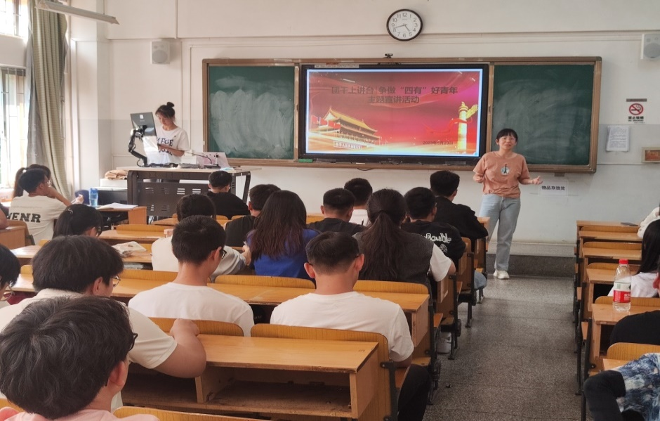 团委团干上讲台,争做“四有”好青年主题宣讲活动暨2022-2023学年第二学期第三次院学生会全体大会在莲华校区主教学楼303教室顺利召开。国资院团委书记王琳老师带领全体团委学生会学生干部开展了学习活动和例会安排。.