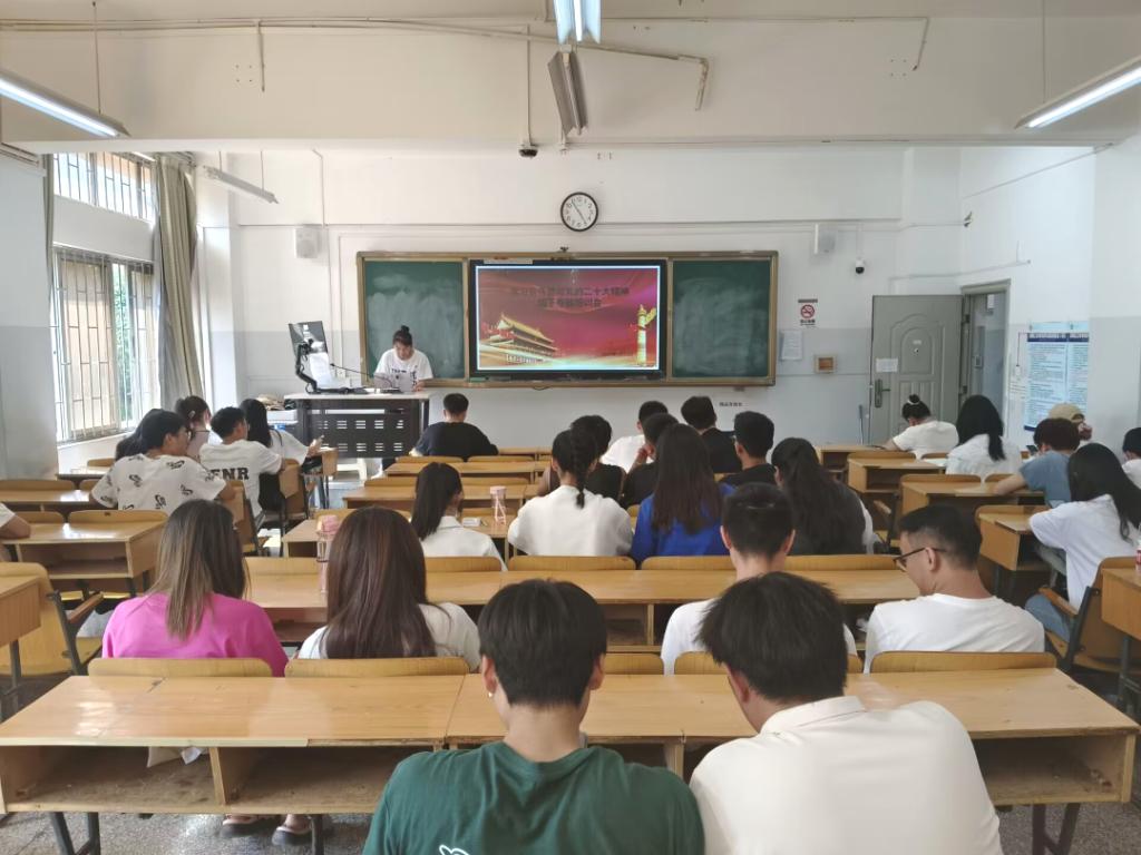 团干上讲台宣讲会上,团委书记王琳老师带领所有参会成员学习习近平新时代中国特色社会主义思想和党的二十大精神,特别是带领同学们热议习近平总书记给中国农业大学科技小院的同学们的回信。与学习贯彻习近平总书记致云南大学建校100周年贺信和给中国农业大学科技小院的学生回信重要精神结合起来,王老师给大家强调了国资学子要争做“四有”好青年。