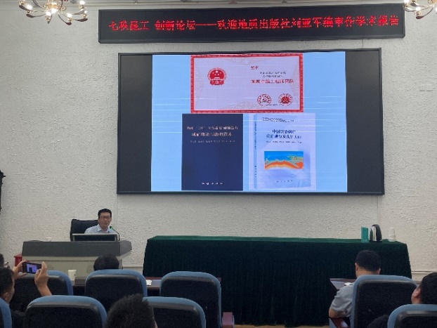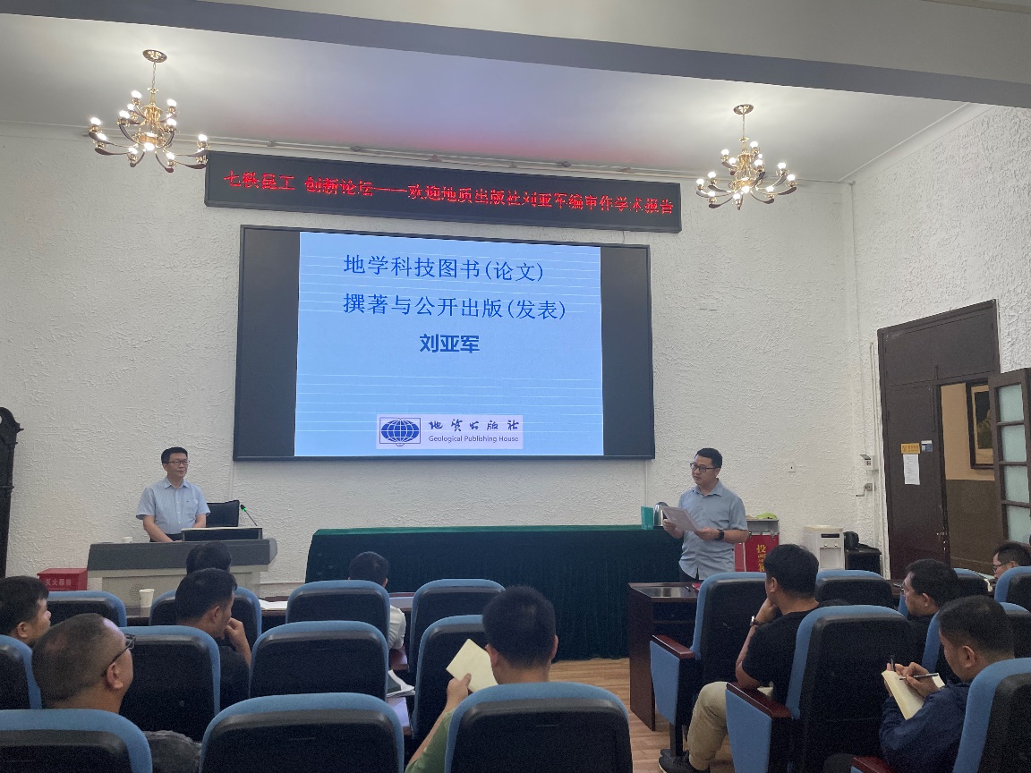 第一会议室作了题为“地学科技图书(论文)撰写与公开出版(发表)”的讲座。