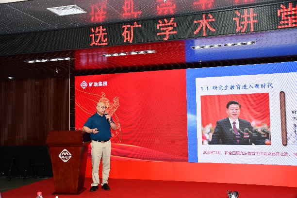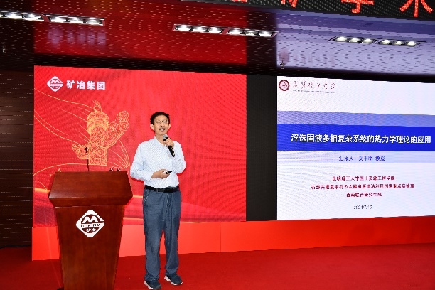 矿加系教授文书明做了“浮选固液多相复杂系统的热力学理论的应用”学术报告,指出浮选过程固液系统热力学研究的重要性,介绍了在该领域取得的理论进展和研究成果。童雄教授以“云锡黄茅山尾矿中锡石绿色利用的试验与关键技术研究”报告,剖析了云锡尾矿中锡石回收及资源综合利用的难点,分享团队在此领域内取得的创新性成果;蓝卓越以“培养高层次拔尖创新人才,推进研究生教育强院建设”为题,分析高层次创新人才培养过程中面临的机遇与挑战,对高质量人才培养提出新方向、新举措;肖庆飞教授以“SABT磨矿提质降耗技术开发及应用”为题,报告介绍了SABT磨矿系统的理论研究成果,探讨新型磨矿介质的作用机制及应用前景。