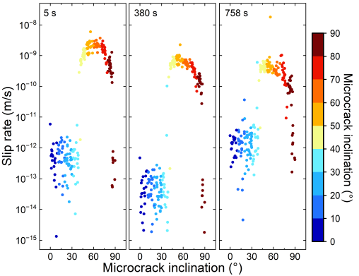 该研究表明,即使在远低于破裂强度的长期微弱外力作用下,岩石内部的微观裂纹也不会保持静止,而是会发生极其缓慢的摩擦滑动。随着时间推移,这些滑动不断重新分配局部应力,使裂纹尖端逐渐受力集中并发生渐进式破裂,最终导致整体失稳。这一发现从物理机制上解释了困扰学界数十年的“亚临界破裂”难题——为何岩石会在看似稳定的低受力环境中经历漫长演化后突然发生破坏。