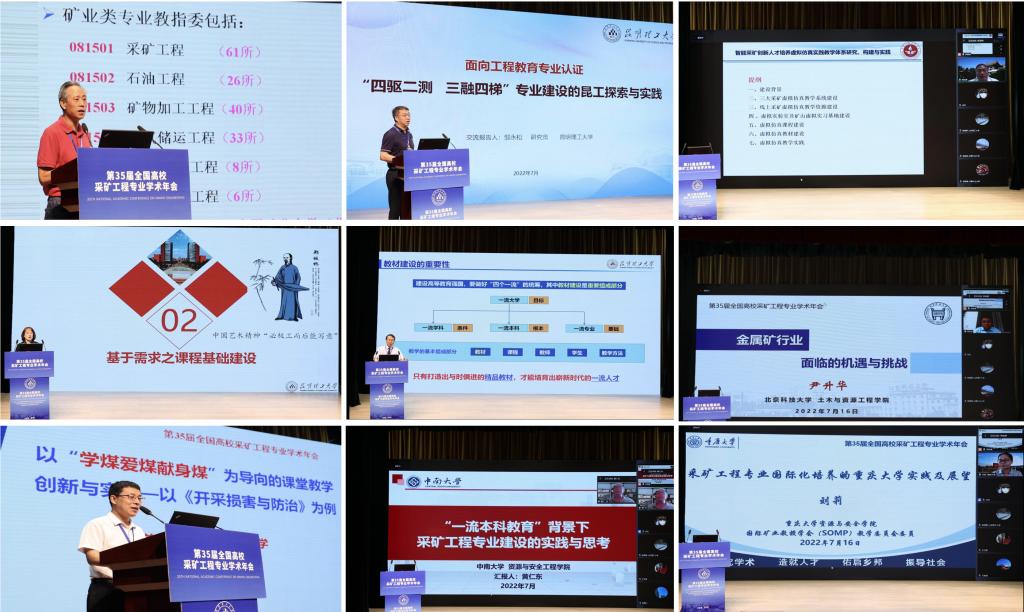 的各项筹备工作给予高度评价。会议围绕“强化课程思政,助力一流专业,新时代采矿工程专业人才培养”主题,共做特邀报告4个、主题报告24个,报告就一流专业建设背景下采矿工程创新人才培养、一流课程建设、课程思政改革、教学方法创新、优质教材建设、专业认证、师资发展等14个议题开展了热烈交流。
