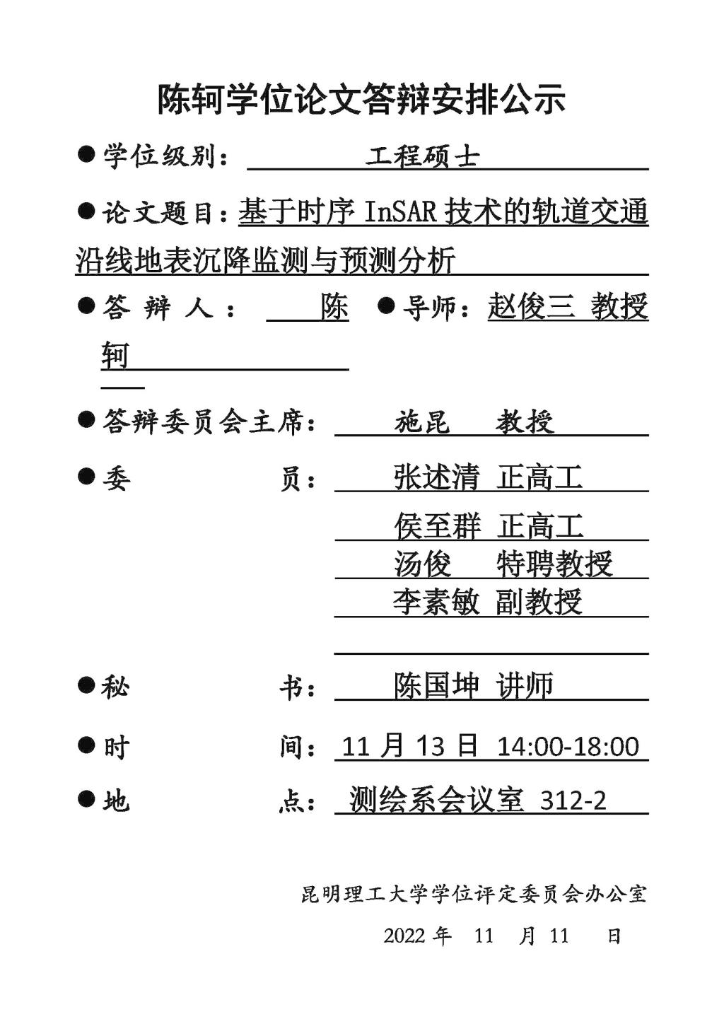 陈轲学位论文答辩安排公示