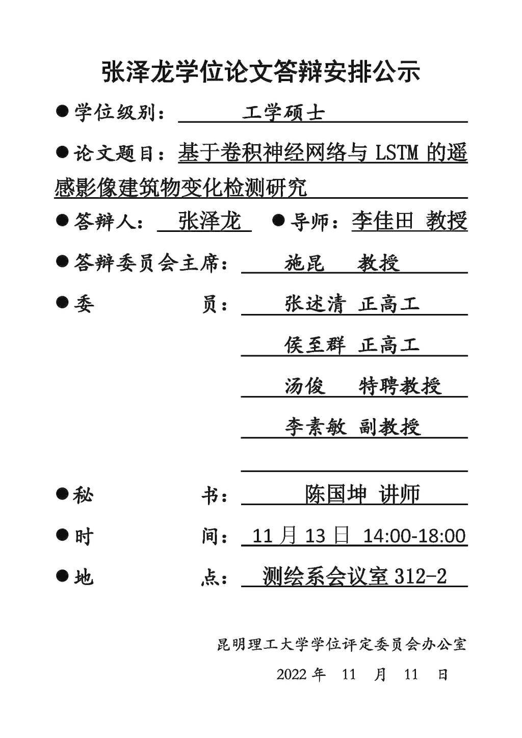 张泽龙学位论文答辩安排公示