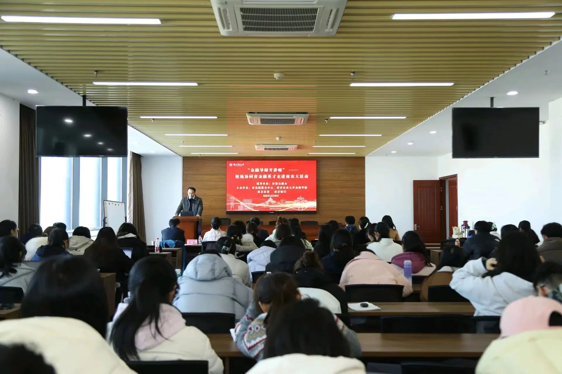 本次活动由市委金融办指导,南京农业大学金融学院联合南京市金融服务中心、南京证券、南京银行共同主办,聚焦金融实务教学,由金融大咖带来行业中鲜活实例与前沿动态,推动金融行业资源与高校人才培养有机结合,为学生搭建接触行业前沿、汲取实务经验的平台,得到了紫金山新闻、南京日报多家媒体采访报道。