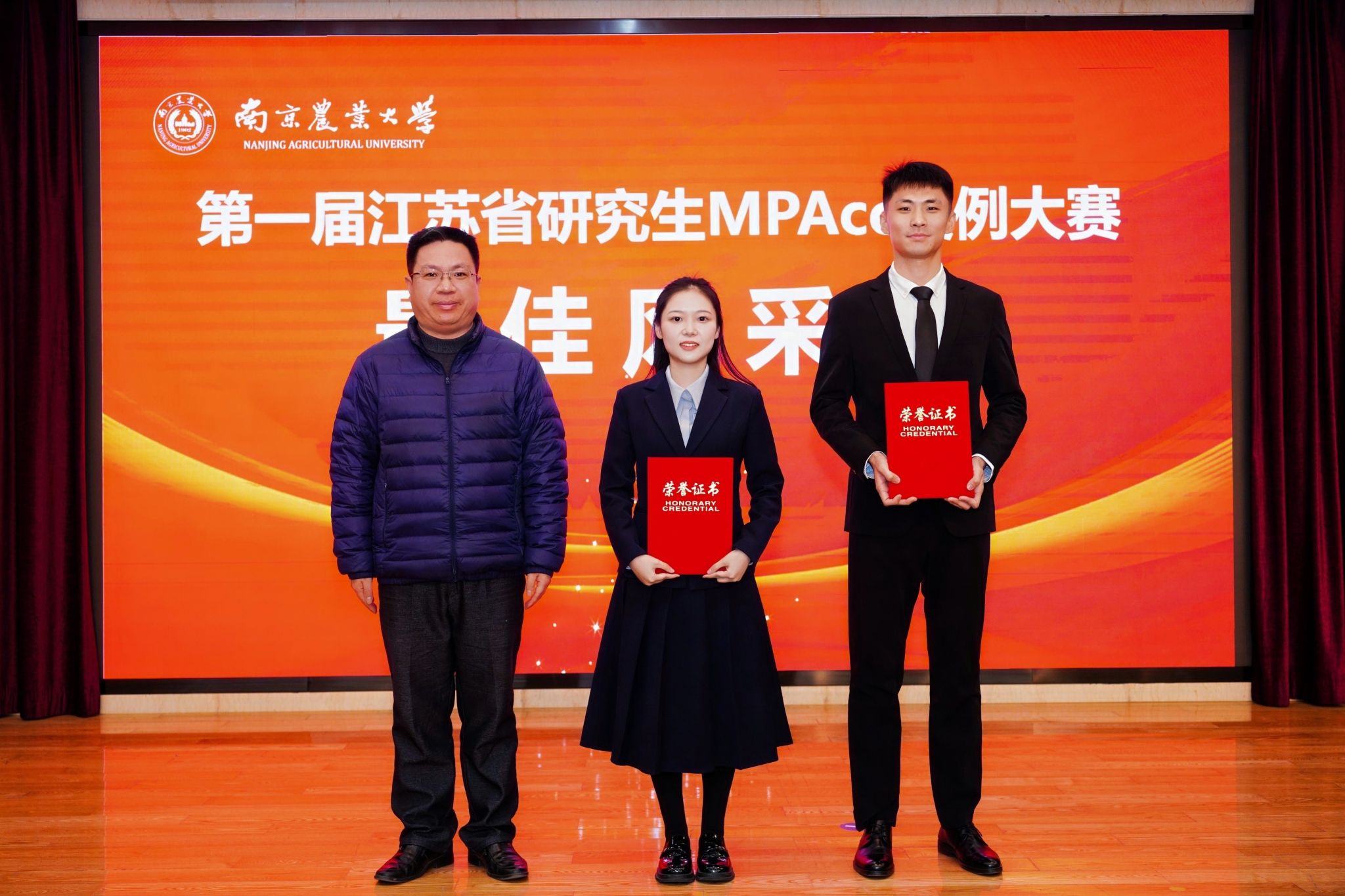 闭幕式环节由南京农业大学金融学院张娆副院长主持。经过严格评审与综合考量,在闭幕式环节公布了本次大赛的各项奖项。最终江苏大学财经学院、江苏师范大学商学院、南通大学商学院获最佳组织奖,南京农业大学张娆教授、南京农业大学姜涛副教授、河海大学张婕教授、南京航空航天大学徐菱涓副教授获最佳指导教师奖,南京农业大学张益铭、盐城工学院仲星宇获最佳风采奖。团队奖项方面,南京农业大学、河海大学、南京航空航天大学三校的3支队伍凭借扎实的专业功底、创新的解决方案与出色的现场应答荣获一等奖;获二等奖的6支队伍来自于南京工业大学、盐城工学院、南通大学、金陵科技学院、南京信息工程大学、中国矿业大学;获三等奖的9支队伍分别来自于南京农业大学、河海大学、常州大学、南京航空航天大学、南京财经大学、江苏大学、江苏师范大学、江苏大学、南京林业大学。