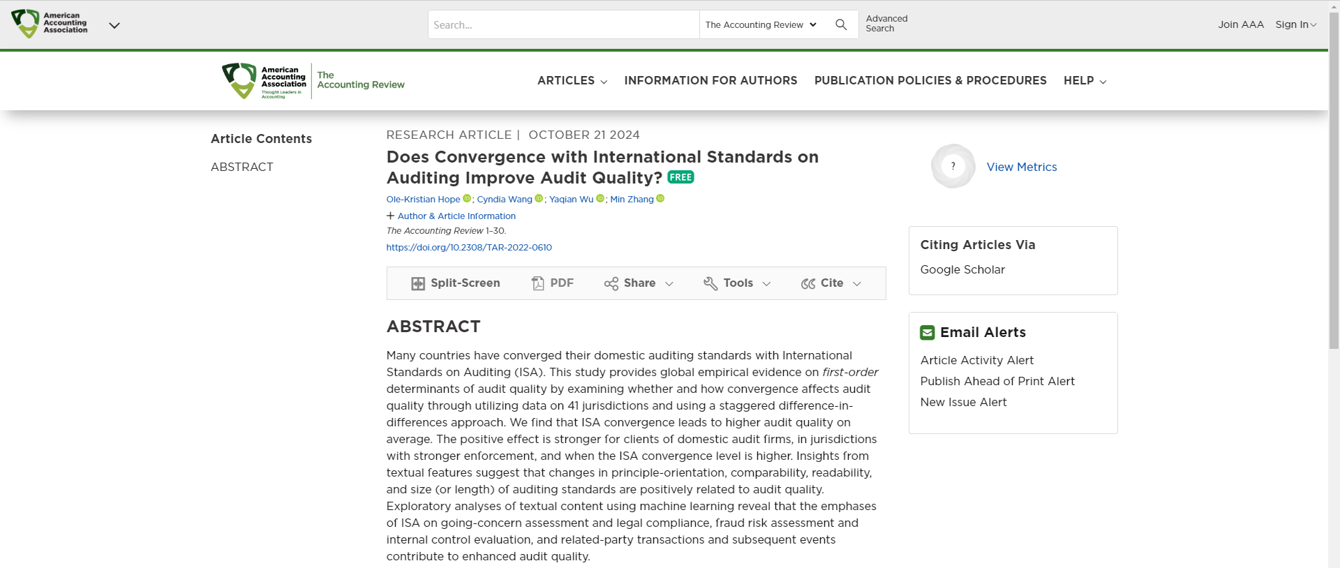 文章链接://publications.aaahq.org/accounting-review/article/doi/10.2308/TAR-2022-0610/13066/Does-Convergence-with-International-Standards-on