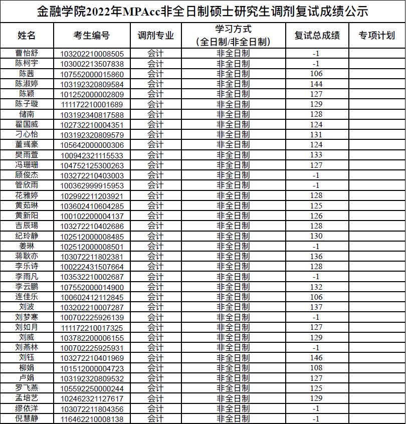 金融学院2022年MPAcc非全日制硕士研究生调剂复试成绩公示