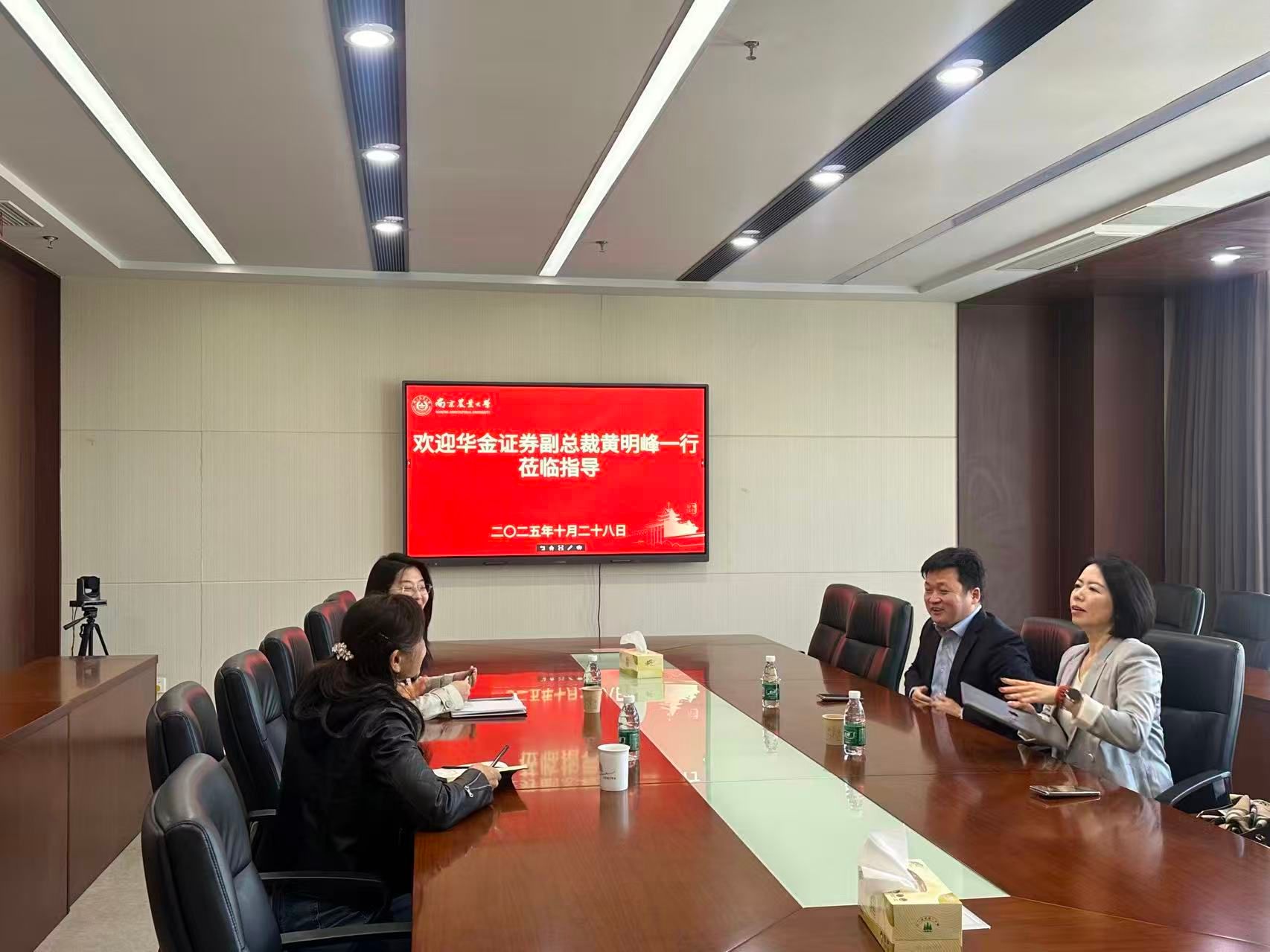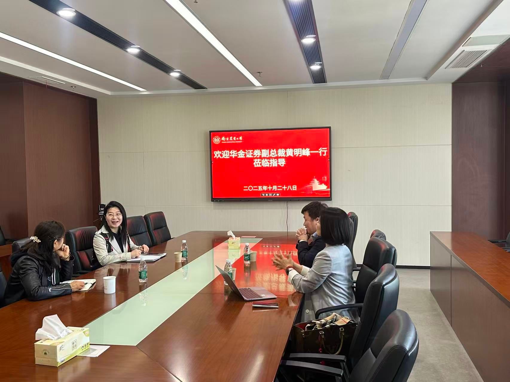 2025年10月28日,华金证券副总裁黄明峰一行莅临南京农业大学金融学院,与学院领导及骨干教师代表围绕校企联合开发实践案例、深化产教融合等议题展开深度座谈交流。双方达成重要共识,计划联合打造一批兼具行业实操性与教学适配性的金融实践案例,收录至南京农业大学金融学院案例库,为高校金融教学注入鲜活行业养分,同时助力企业社会责任落地与行业文化建设升级。