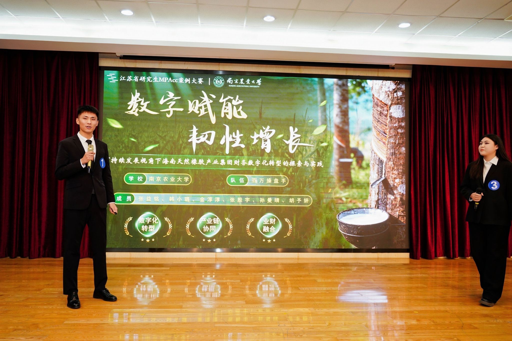 12月27日,2025年第一届江苏省研究生MPAcc案例大赛决赛在南京农业大学卫岗校区金陵研究院三楼报告厅成功举办。本次大赛由江苏省管理学类研究生教育指导委员会主办,南京农业大学研究生院、南京农业大学金融学院联合承办。南京农业大学党委常委、副书记刘营军教授,全国会计专业学位研究生教指委委员、江苏省会计专业学位教育联合会理事长、南京大学王跃堂教授,全国会计专业学位研究生教指委委员、上海国家会计学院院长卢文彬教授,全国会计专业学位研究生教指委委员、上海交通大学夏立军教授,江苏省管理学类研究生教指委副主任委员、南京大学吴建华教授,江苏省管理学类研究生教指委秘书长张玉林教授,江苏农垦集团公司投资部长顾宏武先生,中国石化集团共享服务有限公司南京分公司副总会计师叶爱兵先生,南京林业大学财务处张晖处长,江苏省环保集团资产财务部总经理宋涛先生,江苏银行苏银研究院研究员潘沁女士,南京农业大学研究生工作部副部长林江辉部长,南京农业大学金融学院副院长张娆教授等出席开幕式。开幕式由南京农业大学金融学院院长张龙耀教授主持。