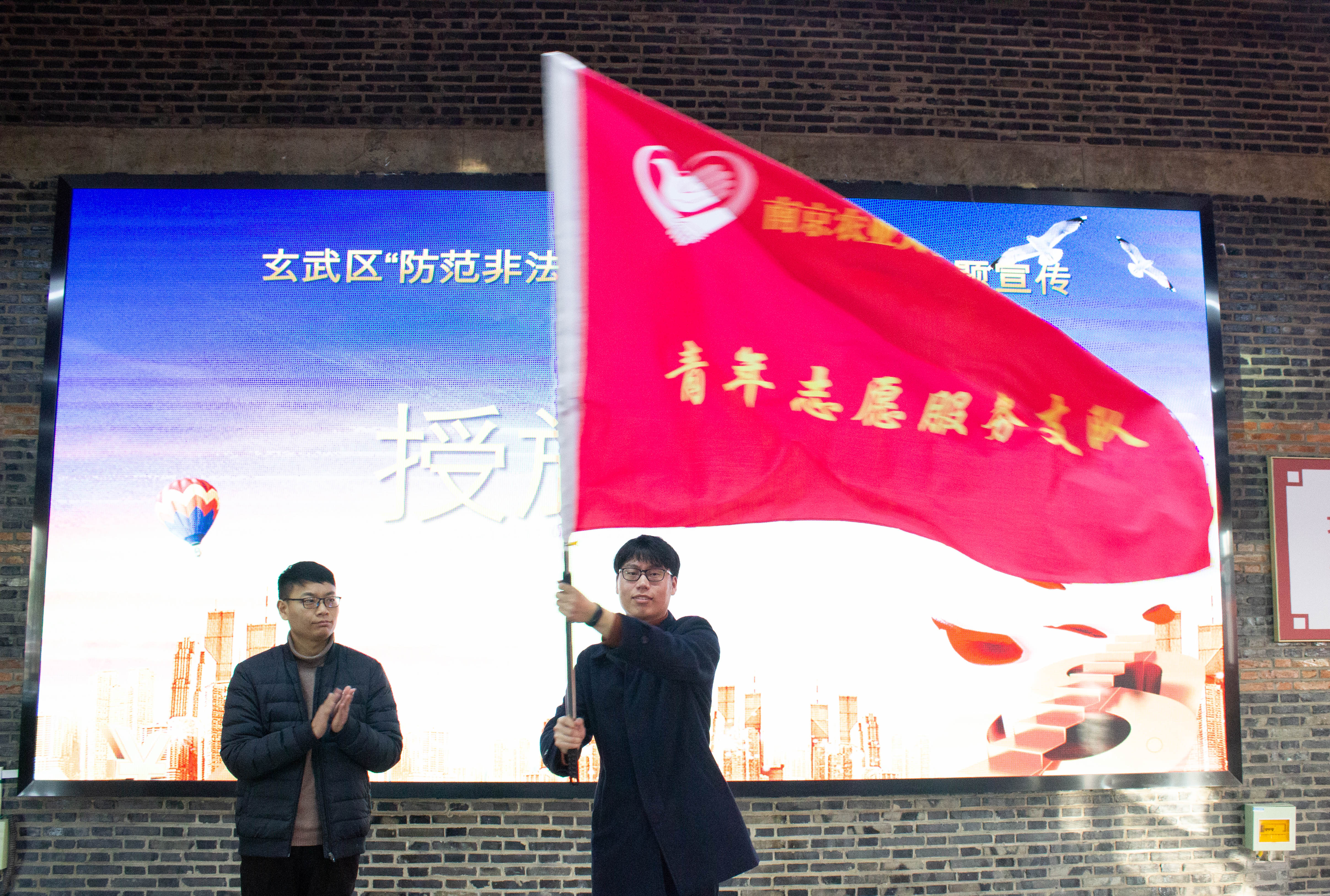 青年志愿服务工作负责人章焱为南京农业大学金融学院志愿服务团队授旗。