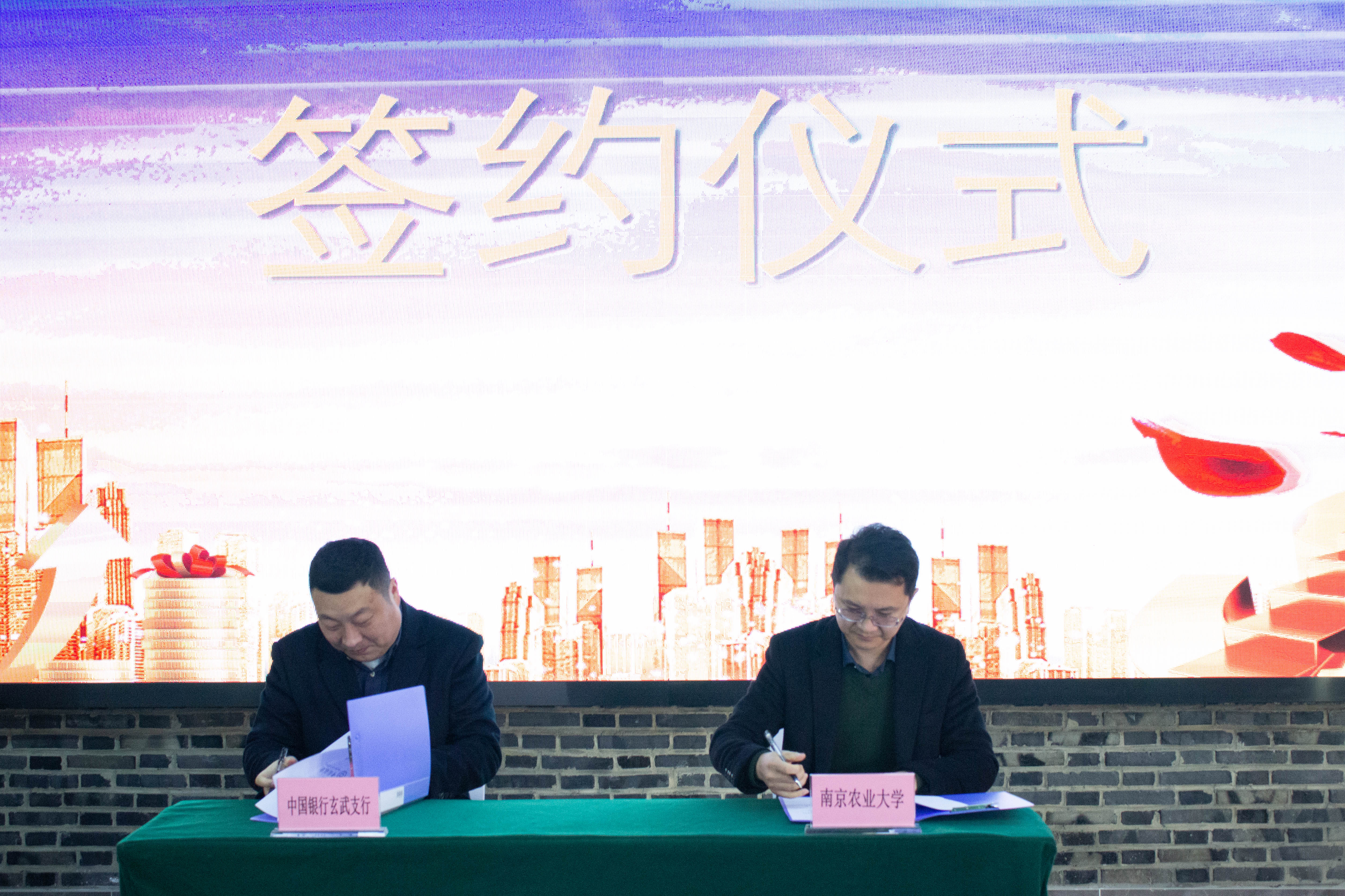 马飞副行长和李日葵副书记共同签订南京农业大学“就业创业实习基地”共建协议并为基地揭牌。