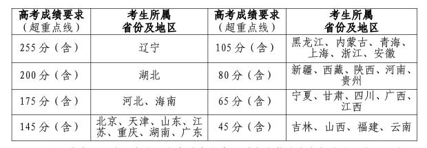 3.学生高考成绩需达到以下要求: