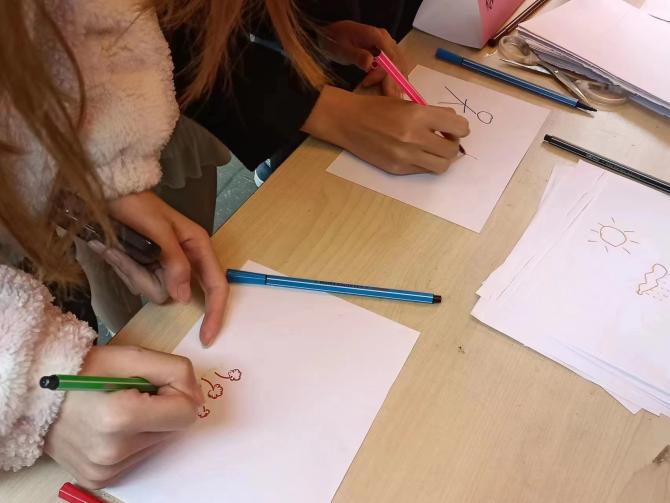 在玉兰路,学生志愿者热情地为过往的同学科普心理知识,学生会心理部的同学还准备了MBTI人格测试、你的情绪我来猜、心灵寄语等互动游戏。同学们通过MBTI测试更好的认识自己,通过画笔在色彩的搭配与图形的勾勒中体验到平静与放松,在明信片上写下自己对身边处于学习焦虑的朋友的美好寄语。