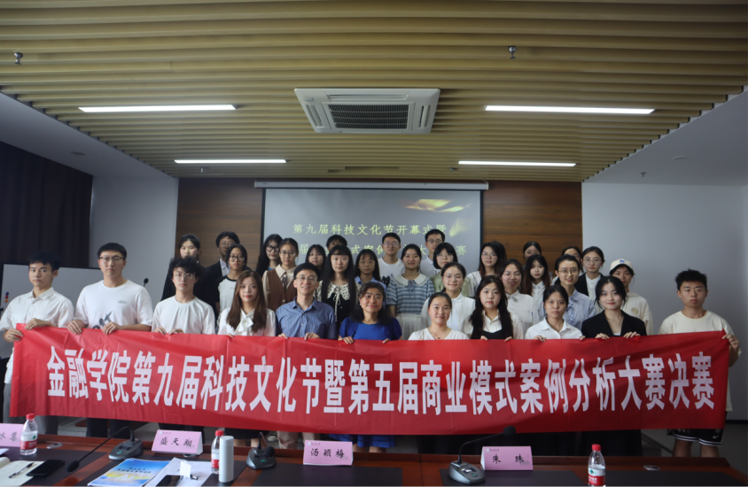 为活跃科技文化氛围,激发学生竞赛参与热情,9月27日下午,由金融学院主办、精英会计师协会承办的第九届科技文化节闭幕式暨第五届商业模式案例分析大赛决赛在第三实验楼1306报告厅顺利举行。金融学院党委副书记朱珠、会计系汤颖梅教授、金融系盛天翔副教授、本科生辅导员徐冰慧及六支参赛队伍等百余人参与本次活动。
