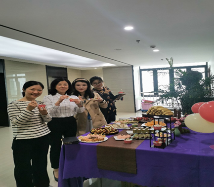 中午一点,学院工会已经联系元祖公司为大家准备了精致的小甜品,多位老师在繁忙的工作之余前来放松、交流。