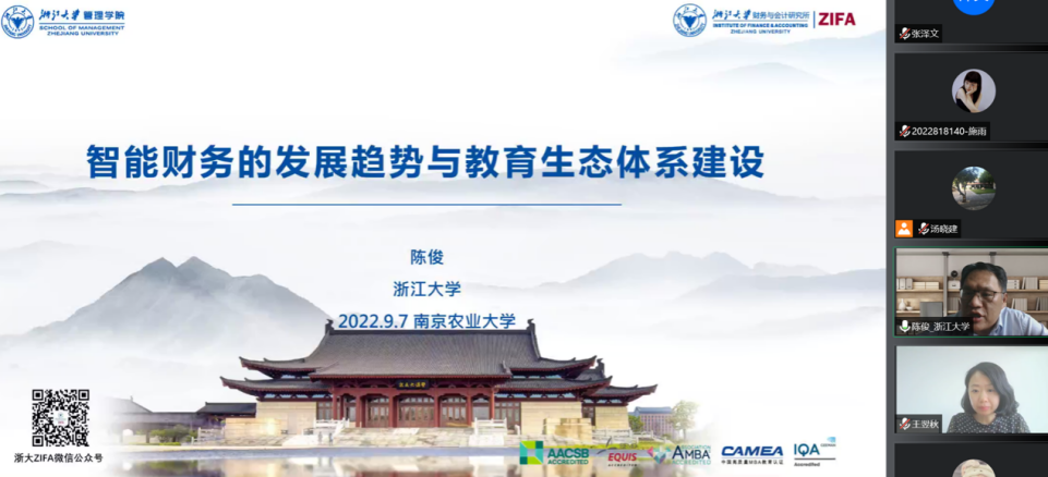 2022年9月7日下午,浙江大学管理学院陈俊教授受邀作题为“智能财务的发展趋势与教育生态体系建设”的学术报告,报告由金融学院副院长王翌秋教授主持,金融学院百余名师生参加。