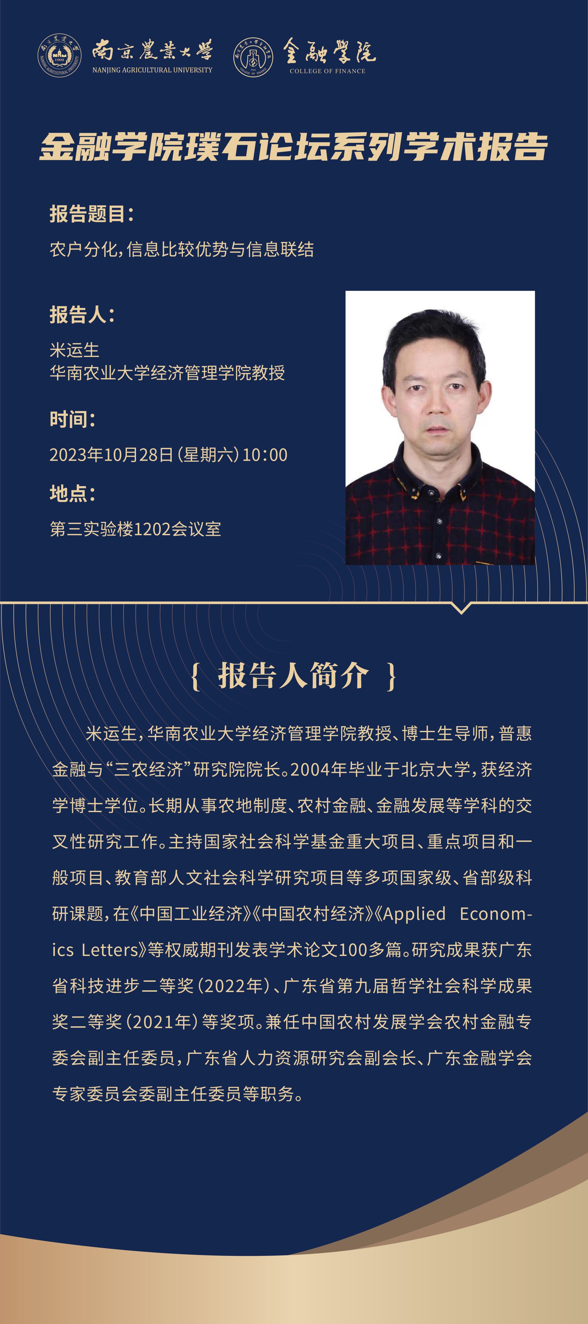 讲座预告(10.28)丨农户分化,信息比较优势与信息联结