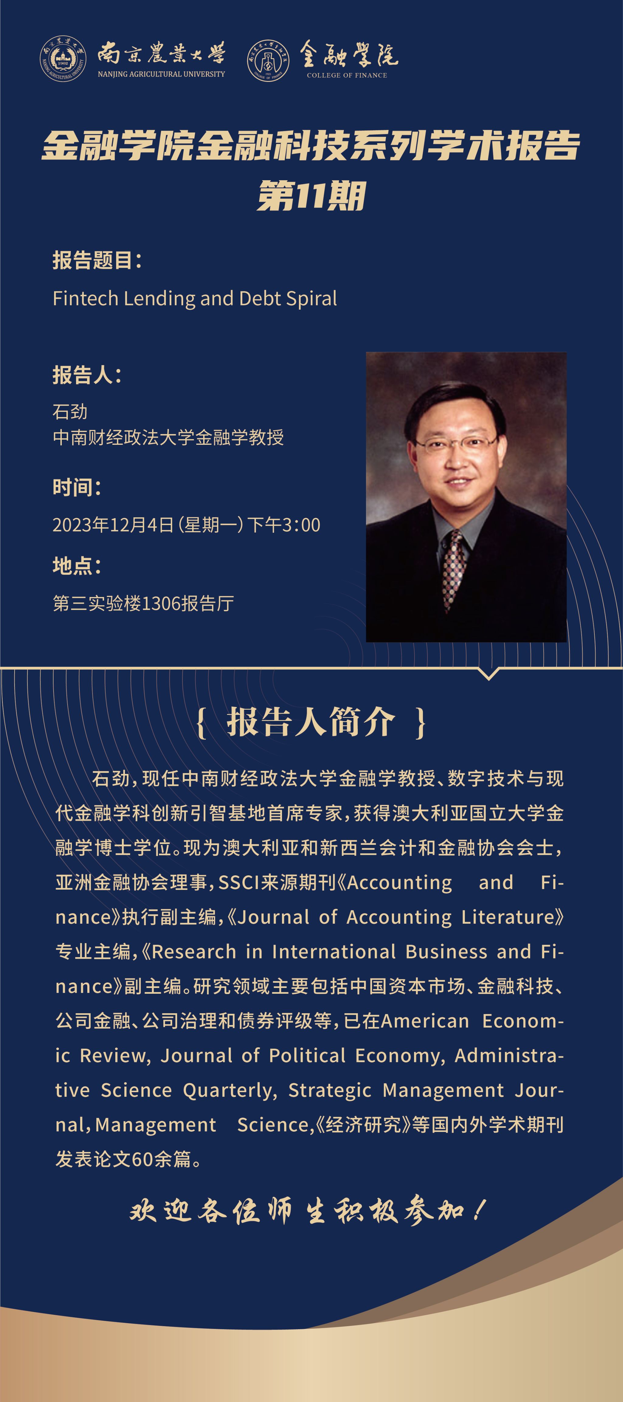 讲座预告(12.04)丨Fintech Lending and Debt Spiral